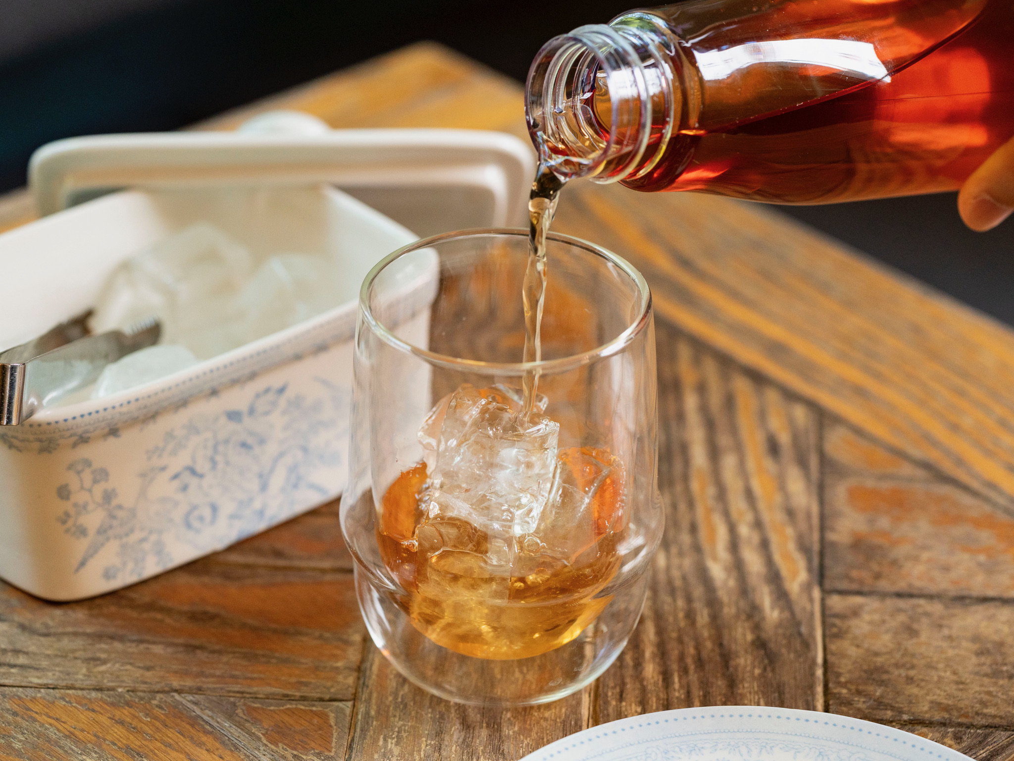 紅茶の色と香りを楽しみながら、氷の入ったグラスにそっと注ぎます。