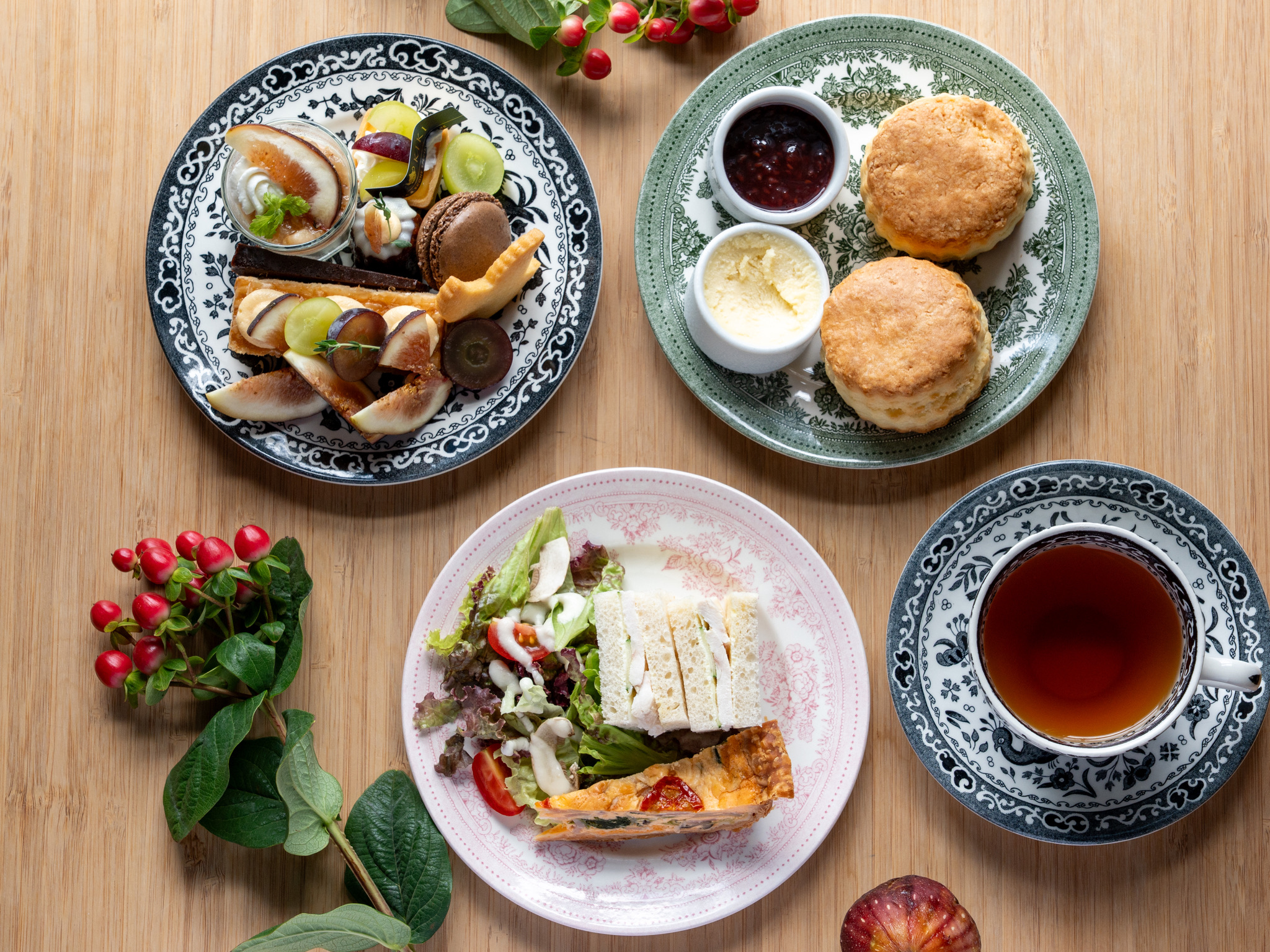 読書、芸術、食欲の秋。秋季限定のアフタヌーンティーセットは、和歌山県の契約農家「紀のファーム」から仕入れたいちじくがスイーツたちを彩ります。淹れたての紅茶と共に、一足早い秋の香りをお届けします。
