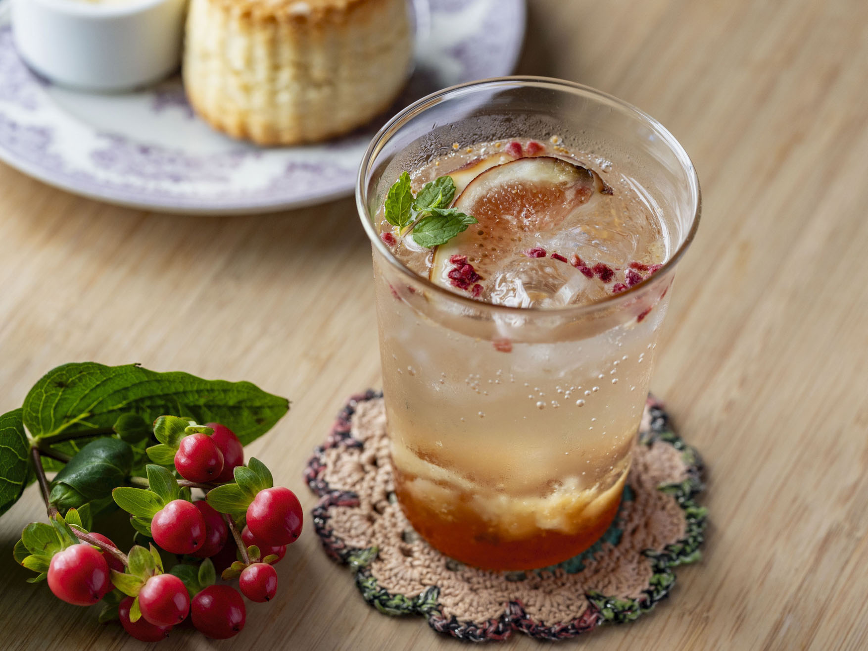 涼やかな炭酸に、和歌山県の梅干し専門店「五代庵」の南高梅の深い味わいと、芳醇な和歌山県産いちじくの香りを溶け込ませました。初秋の訪れを感じる、爽やかなティーソーダです。