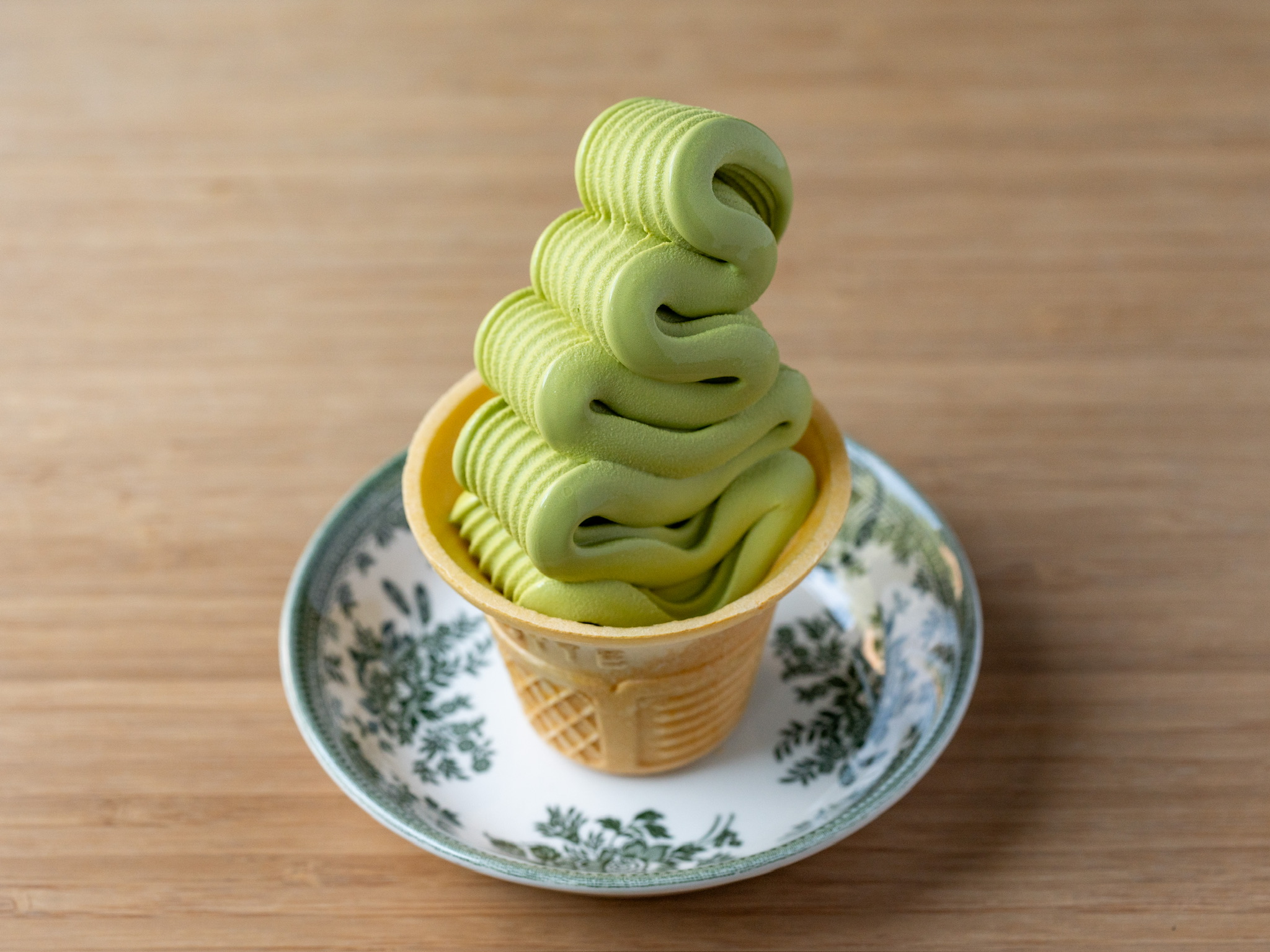 きれいに折り重なった形が可愛いソフトクリーム。 宇治抹茶と乳の風味が高次元でバランスされた、味わい深いソフトクリームです。京都自慢の宇治抹茶フレーバーをお楽しみください。