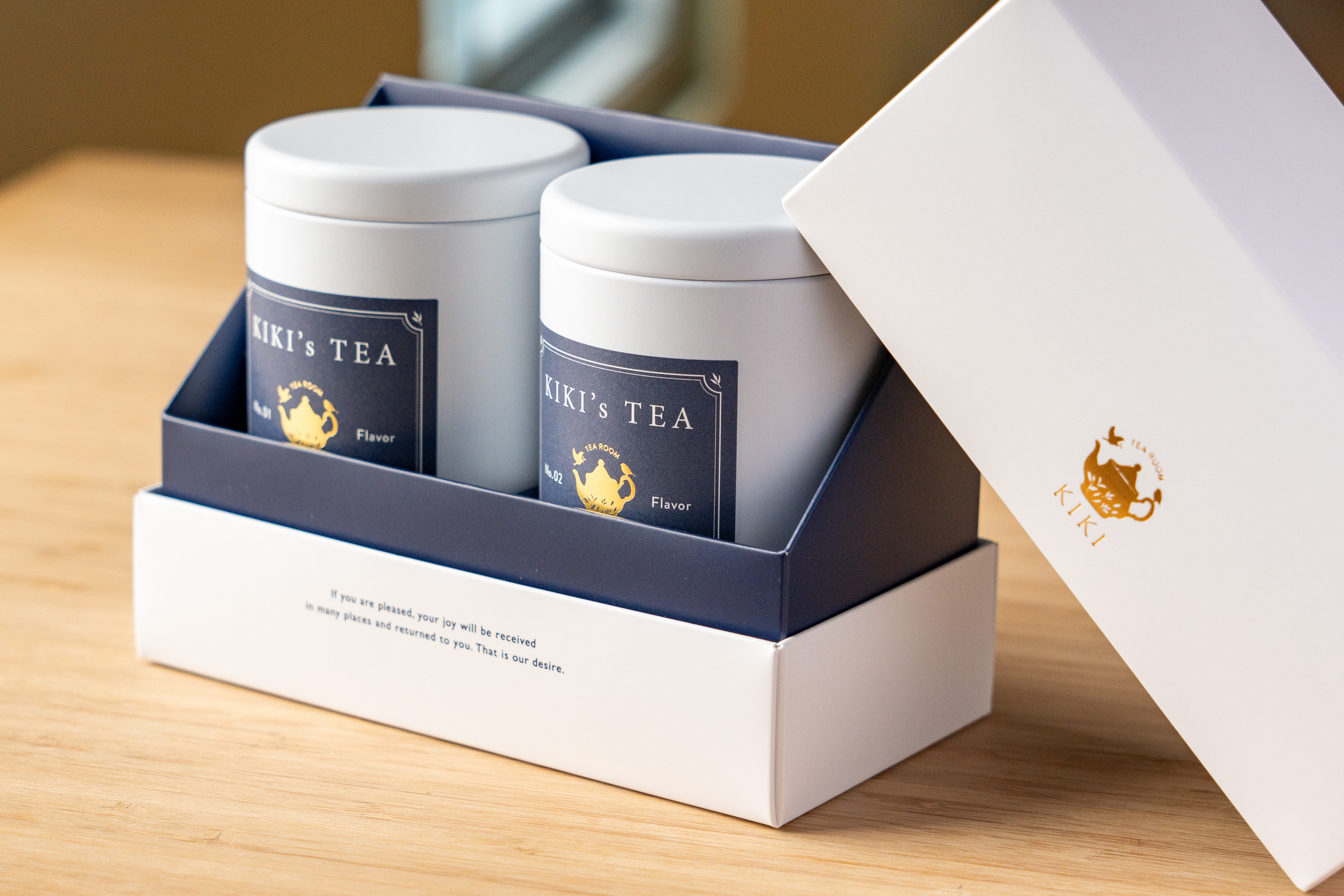 KIKIオリジナルフレーバーティー 「ファーストドロップ」 と 「ルミナスフルーツ」 を、オリジナルギフトBOXに詰め合わせました。ご自宅用にはもちろん、贈り物や内祝い、ウエディングギフトなど、幅広いシーンでご利用いただけるおすすめのセットです。