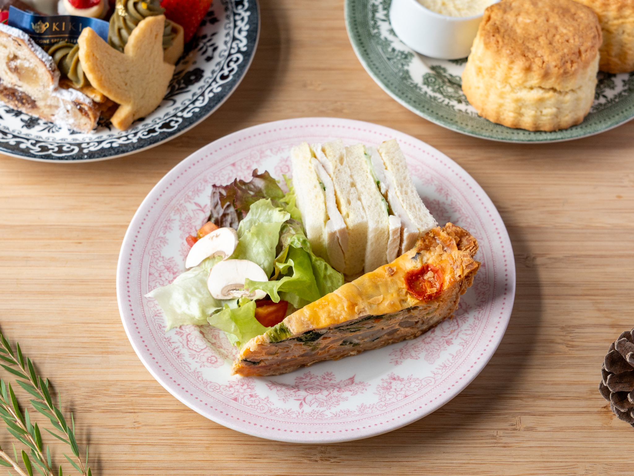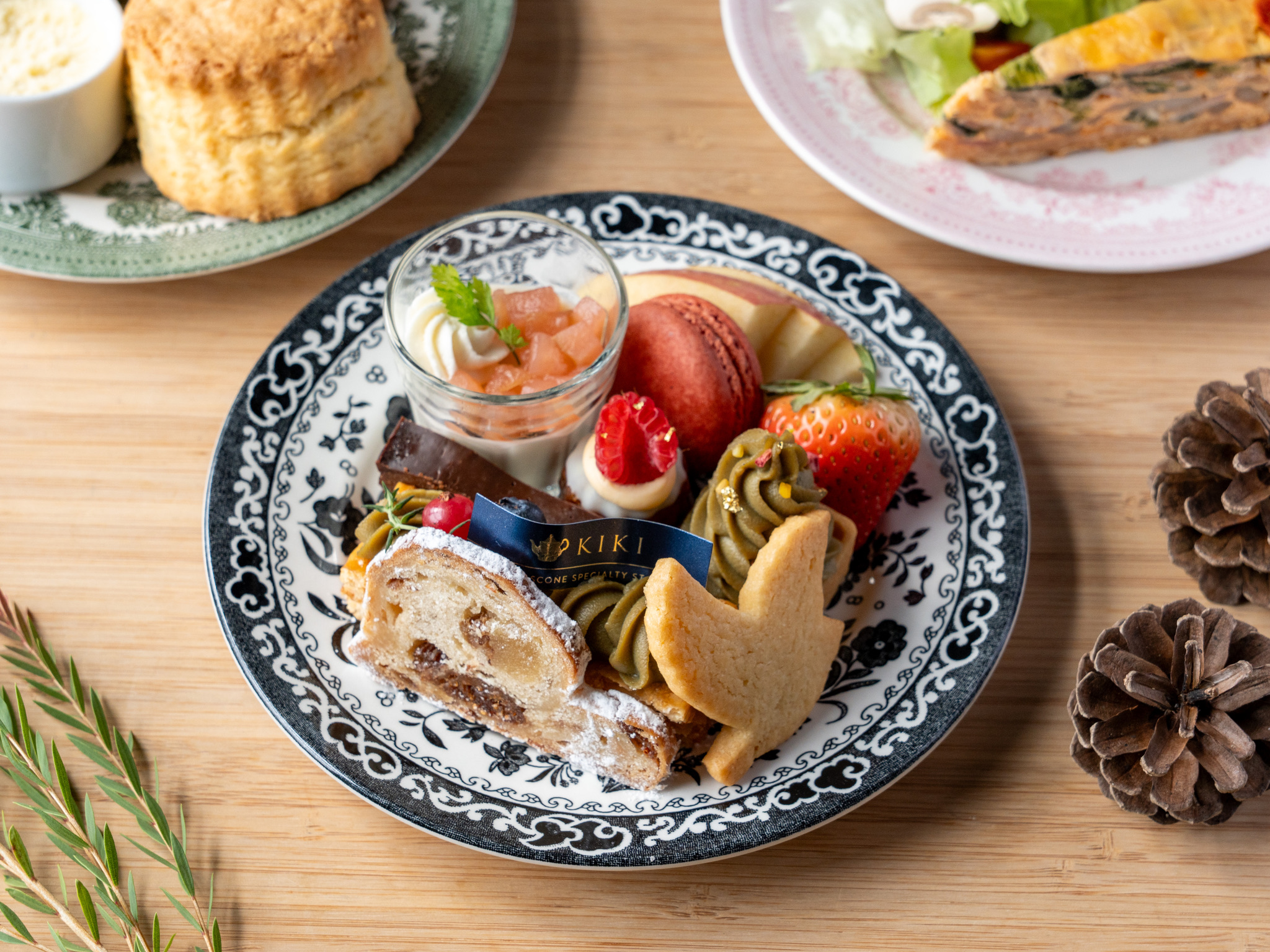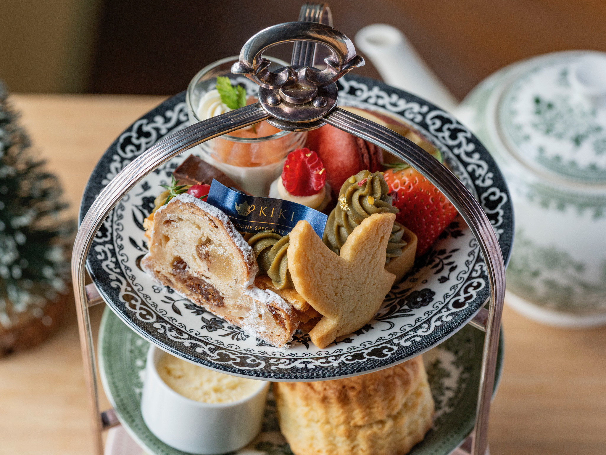 セットには、ピスタチオクリームのミニツリー、自家製シュトレン、紅茶のパンナコッタなど、KIKIならではのスイーツをぎゅっと詰めた3段スタンドのハンパーをご用意。今年一年の感謝をこめて、KIKIからあなたへ贈る特別なクリスマスプレゼントです。