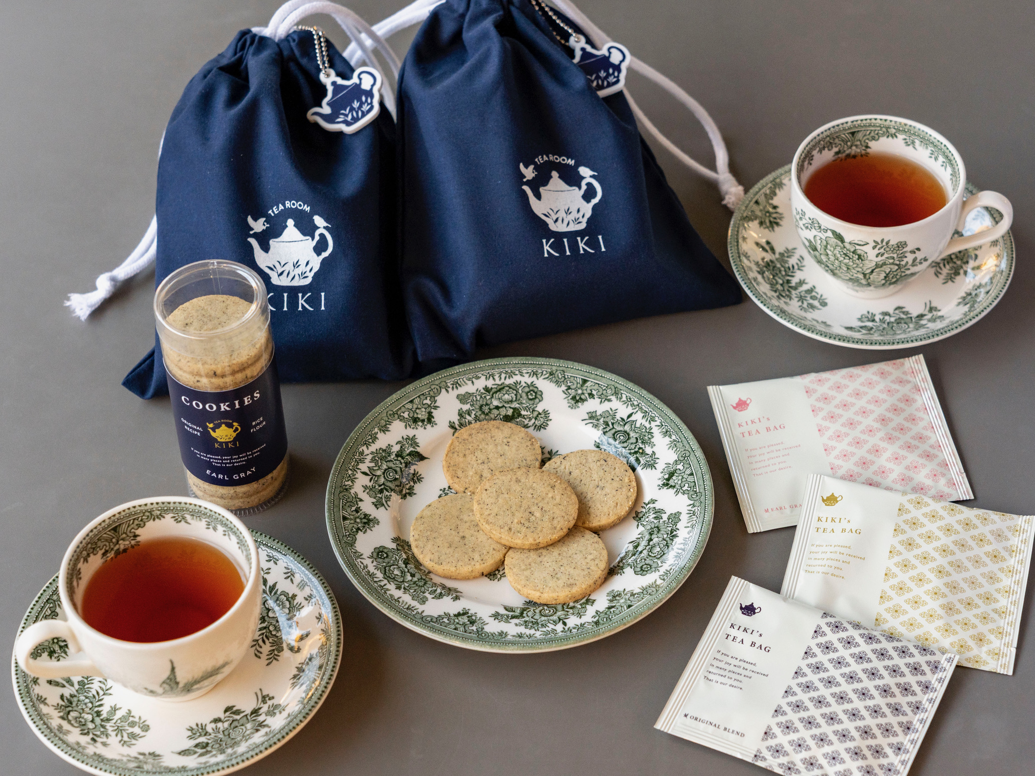 いつもTEA ROOM KIKIをご利用いただき、誠にありがとうございます。冬の贈り物にぴったりな、数量限定 「KIKI's クッキー&ティー ギフトセット」 を発売いたします。オリジナル巾着に、米粉のアールグレイクッキーや3種の紅茶、さらにオリジナルキーホルダーを詰め込んだ、KIKIならではの特別なギフトセットです。