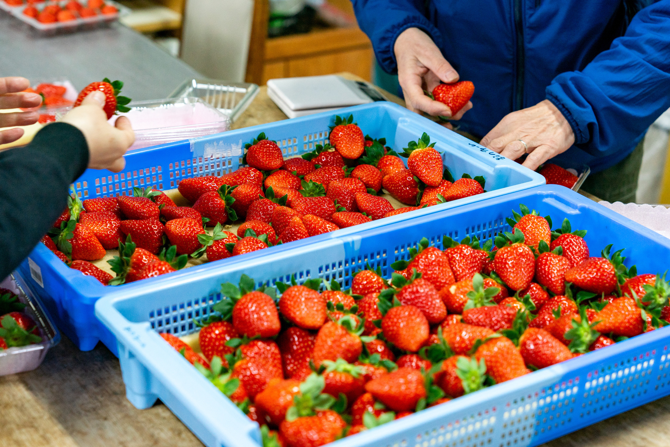 生産者さんは和歌山県のフルーツ農園「紀のファーム」の林真司さん。林さんがつくるいちごは土壌からこだわり、低農薬で安全・安心な品質で生産されています。皮が薄いため県外にはほとんど出回ることがない幻のいちご。果実はやや丸みを帯びた円錐形をしていて大きめ。甘味が強く酸味はおだやかで、果汁が多いいちごです。ぜひこの機会にご堪能ください。