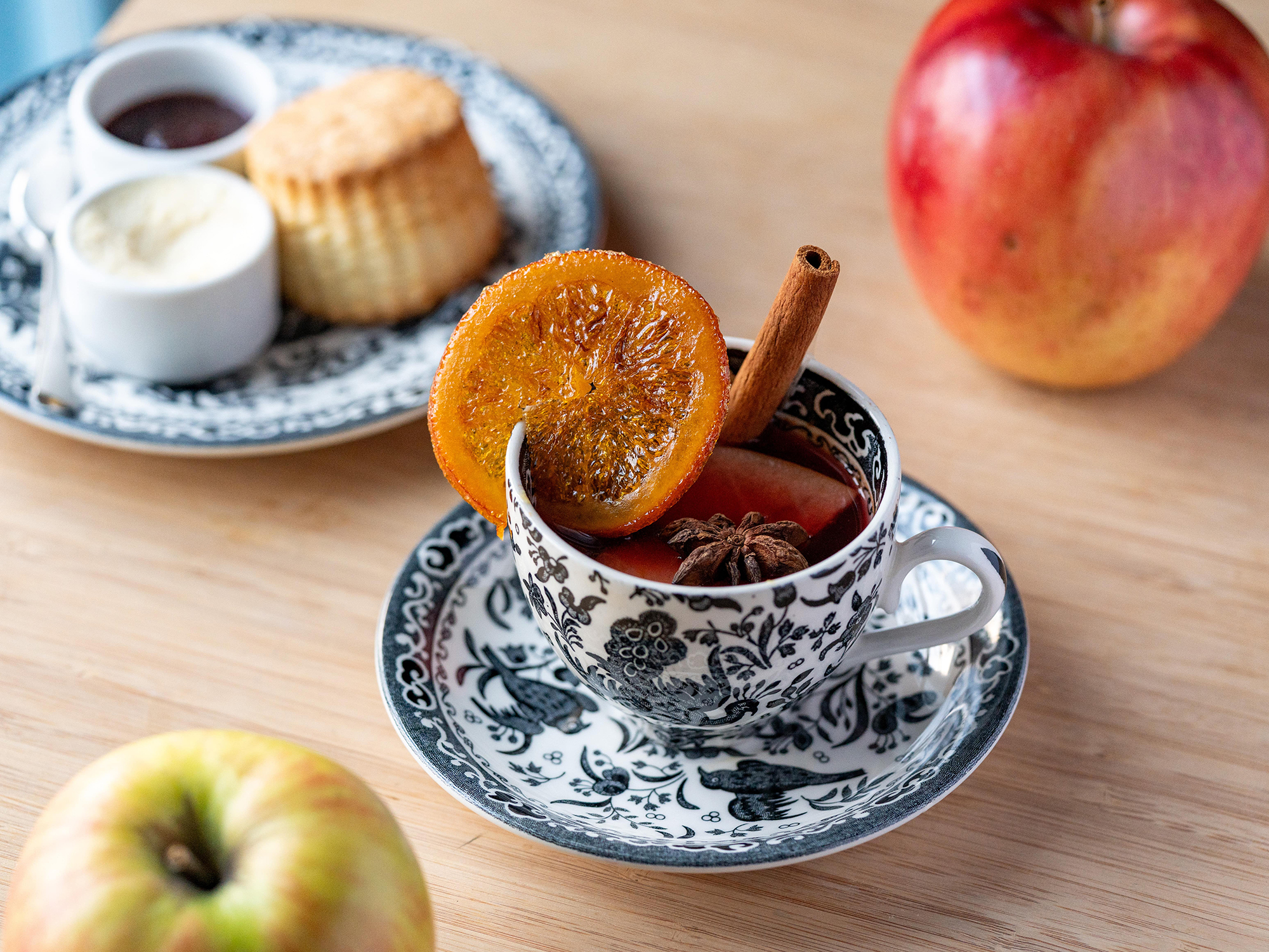 りんごや南高梅の上品な酸味と、シナモンやクローブの香りが重なるホットワイン風スパイスティー。甘く華やぐ香りで、心も体も温まる冬限定の一杯です。