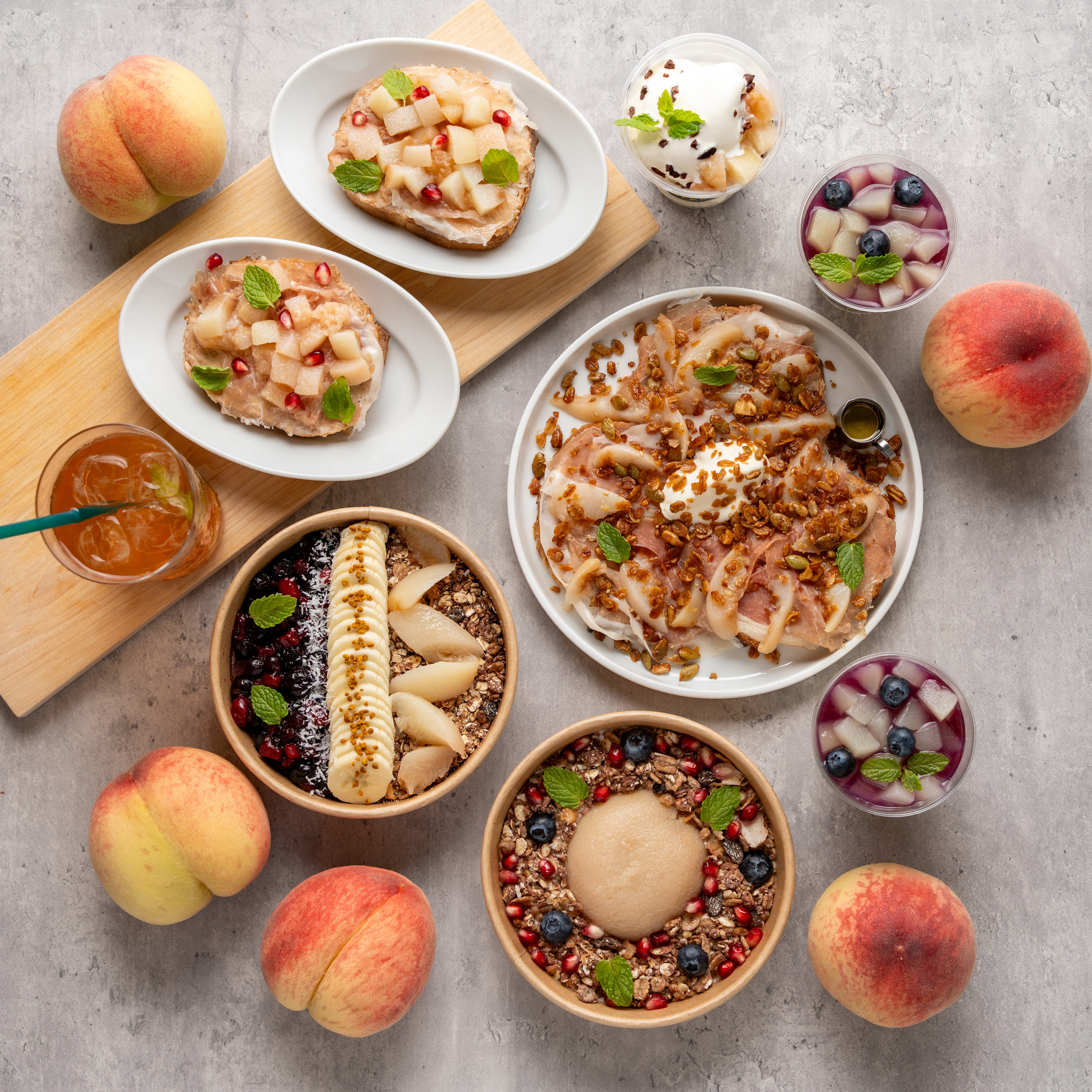 サンバゾン製アサイーを使用した濃厚なアサイースムージーに和歌山県桃山町のフレッシュな桃をコンポートし、ベリー、ココナッツ、ビーポーレンなどをトッピング。低GI&ローカロリーなアガベシロップなどでヴィーガン仕様に仕上げました。※1日30食限定