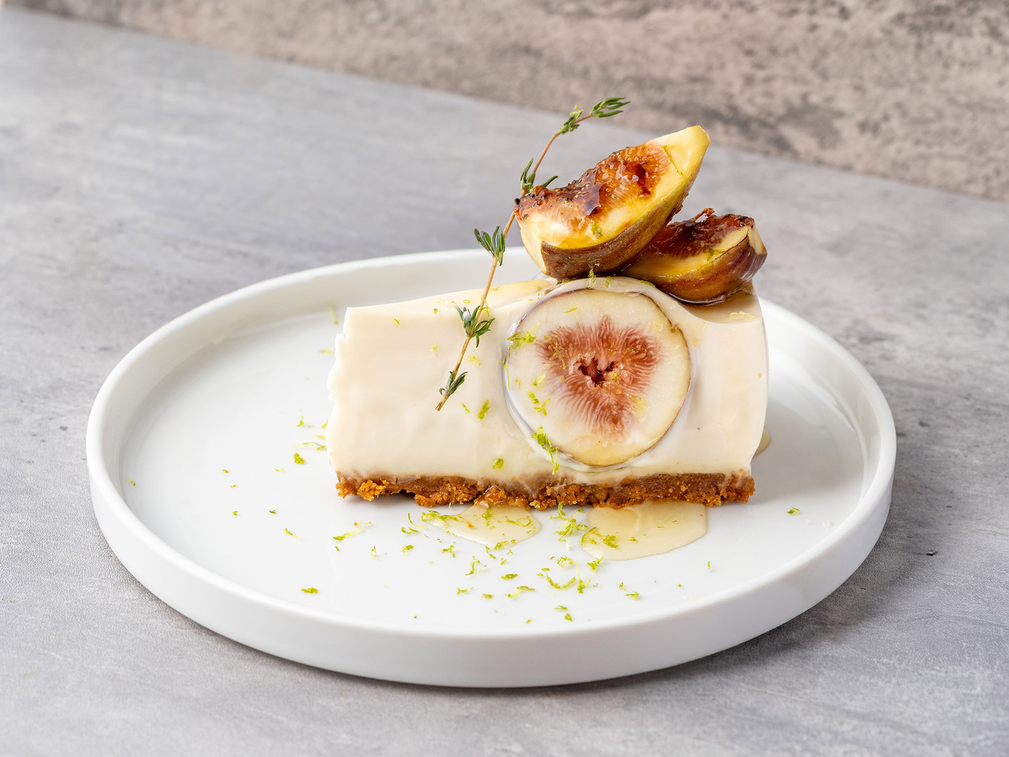 さっぱりとしたチーズケーキのベースに、いちじくを丸ごと入れました。上にもいちじくを飾り、いちじくを堪能できるデザートです。