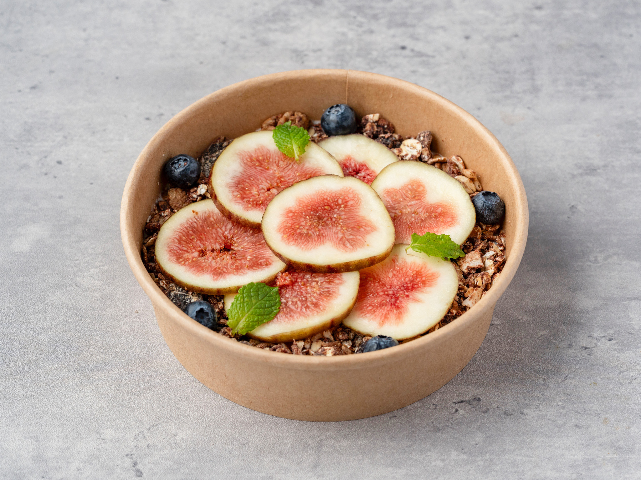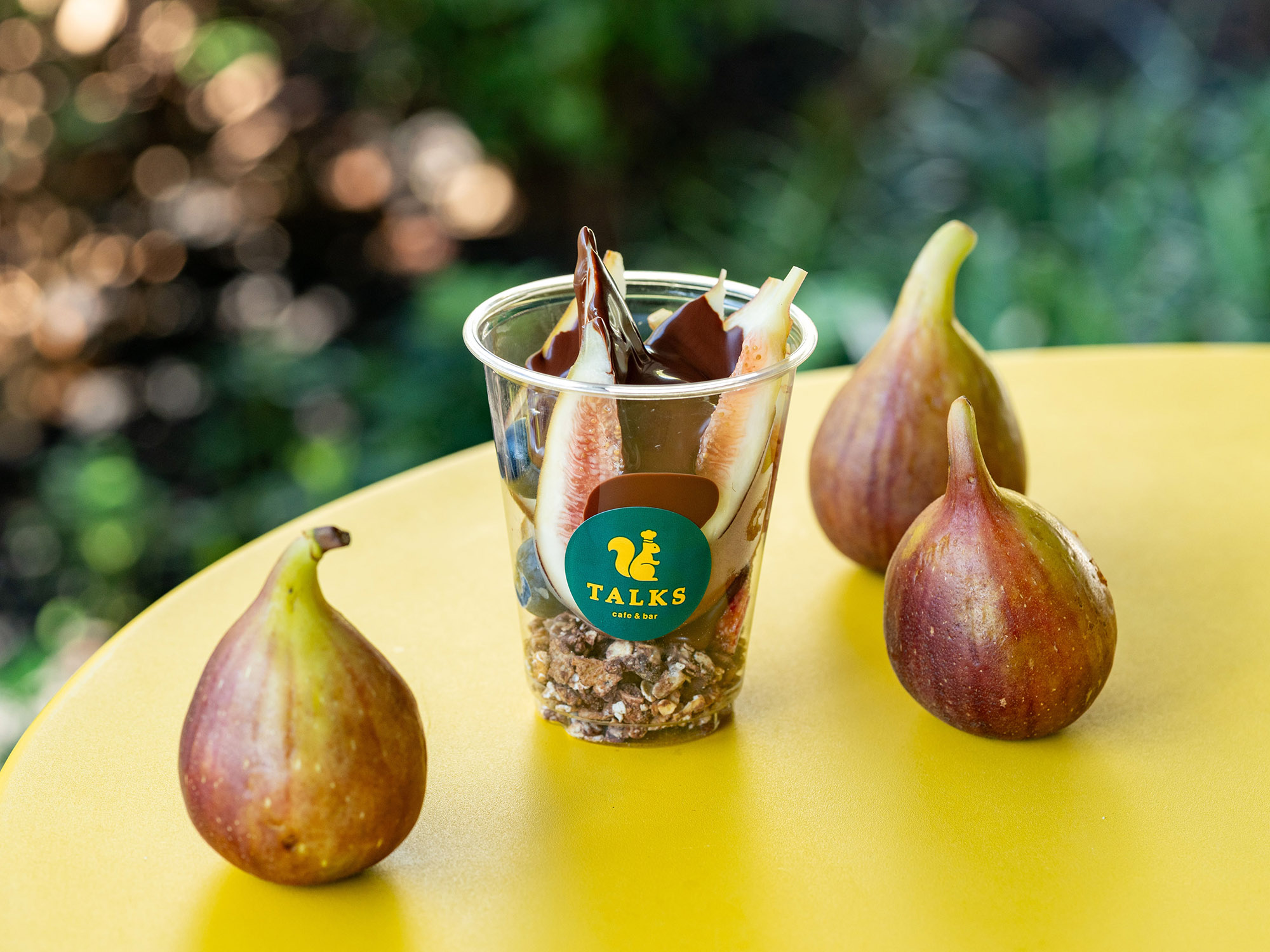 豆乳ヨーグルトに、カカオ70%のTALKSオリジナルチョコレートで作ったチョコグラノーラを使用。和歌山県産いちじくとブルーベリーを贅沢にトッピングしました。