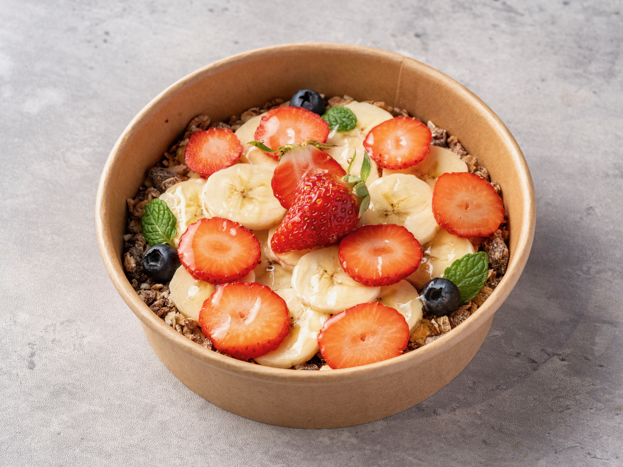 サンバゾン製アサイーを使用した濃厚なアサイースムージーに旬のいちご、ベリー、ココナッツ、ビーポーレンなどをトッピング。低GI&ローカロリーなアガベシロップなどでヴィーガン仕様に仕上げました。【Vegan】